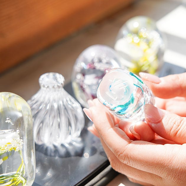 その日に持ち帰りができるガラスはんこ作り体験も人気。お土産や贈り物にも喜ばれそうですね。