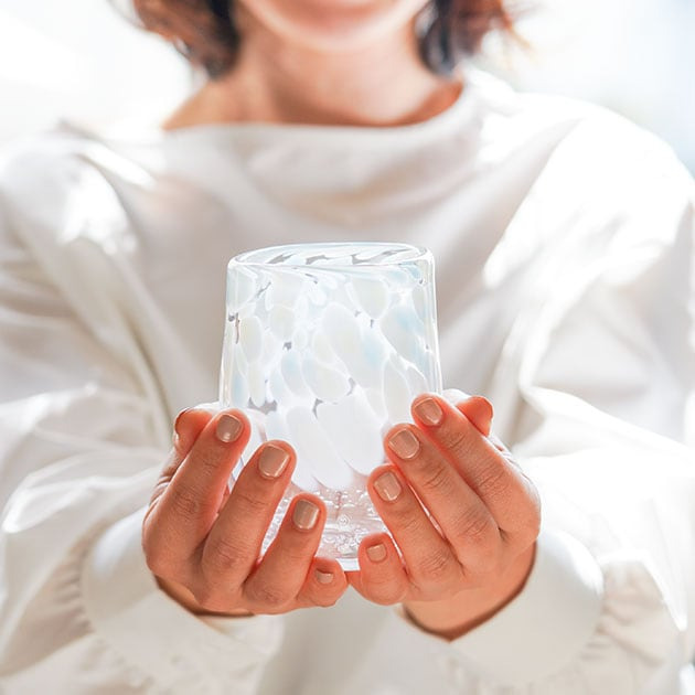 窯の中で真っ赤に溶けたガラスに、息を吹き入れて膨らませながら形成する吹きガラス。「Glass Studio刻」では、グラスや小鉢、花瓶などのガラス作品を作ることができます。