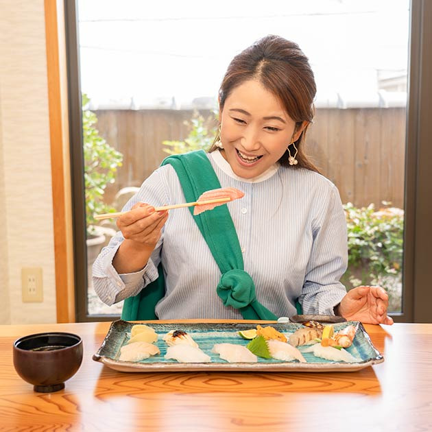 セリを見学した後は、明石の新鮮な魚を贅沢に使った寿司を堪能して。