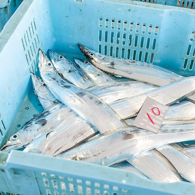 明石海峡が生み出す漁場に恵まれ、年間100種類以上の魚が水揚げされる明石浦。生きた魚を扱う活魚セリは全国的に珍しく、昼間にセリが行われることから「昼網」とも呼ばれます。