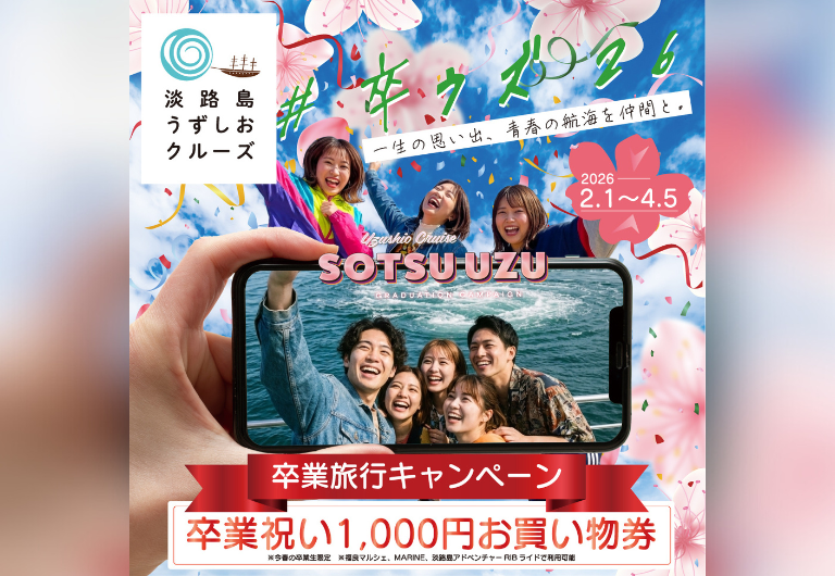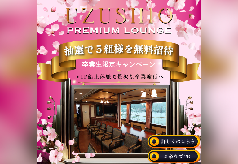 今春卒業を迎えるすべての学生を対象とした卒業旅行応援キャンペーン「#卒ウズ’26」を2026年2月1日(日)より開催いたします。本キャンペーンでは、ご卒業記念に「1,000円分のお買い物券」のプレゼントを主軸に、SNSを通じた「VIP船上体験」の抽選招待を加え、卒業生の皆様の新しい門出を全力で祝福いたします。