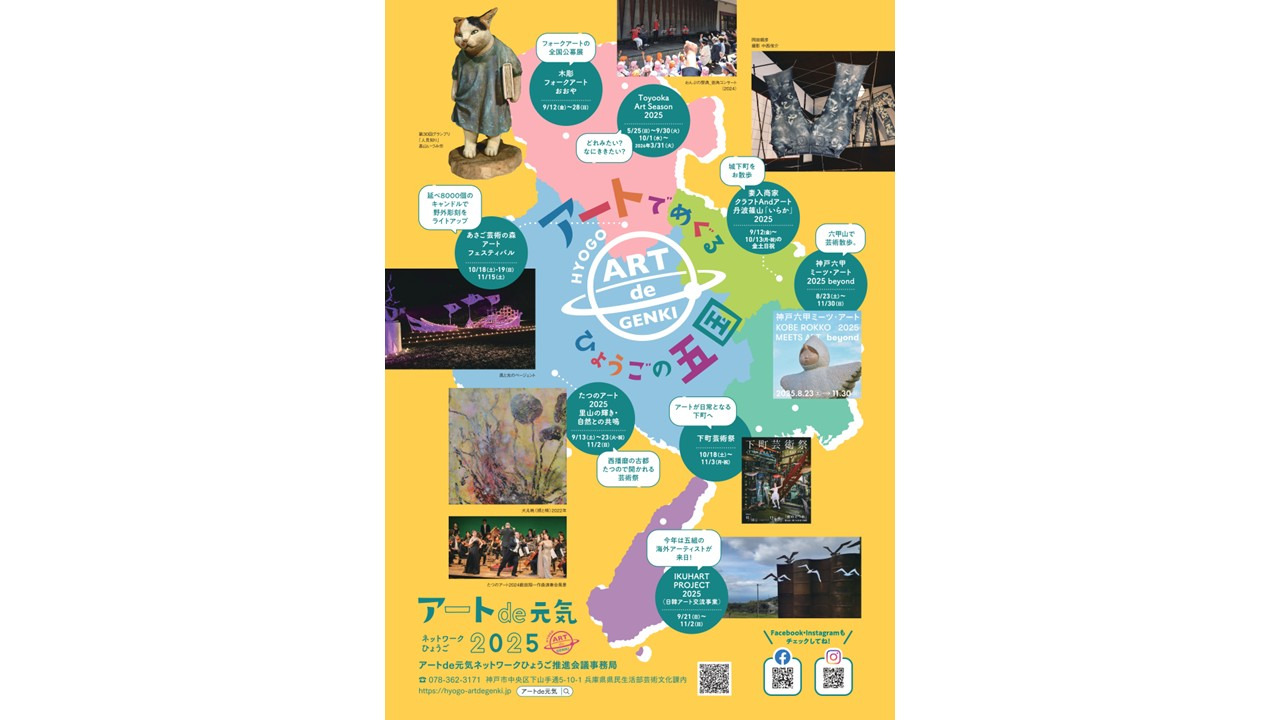 兵庫県では、県内の芸術祭やアートプロジェクト等が連携し、アートの魅力発信を目的として、「アートde元気ネットワークひょうご」の取組みを進めています。県内各地域では、伝統的建築物や自然風景といった地域固有の資源と芸術を融合した魅力的な芸術祭が開催されており、この度、それらを紹介するチラシを作成しました。
