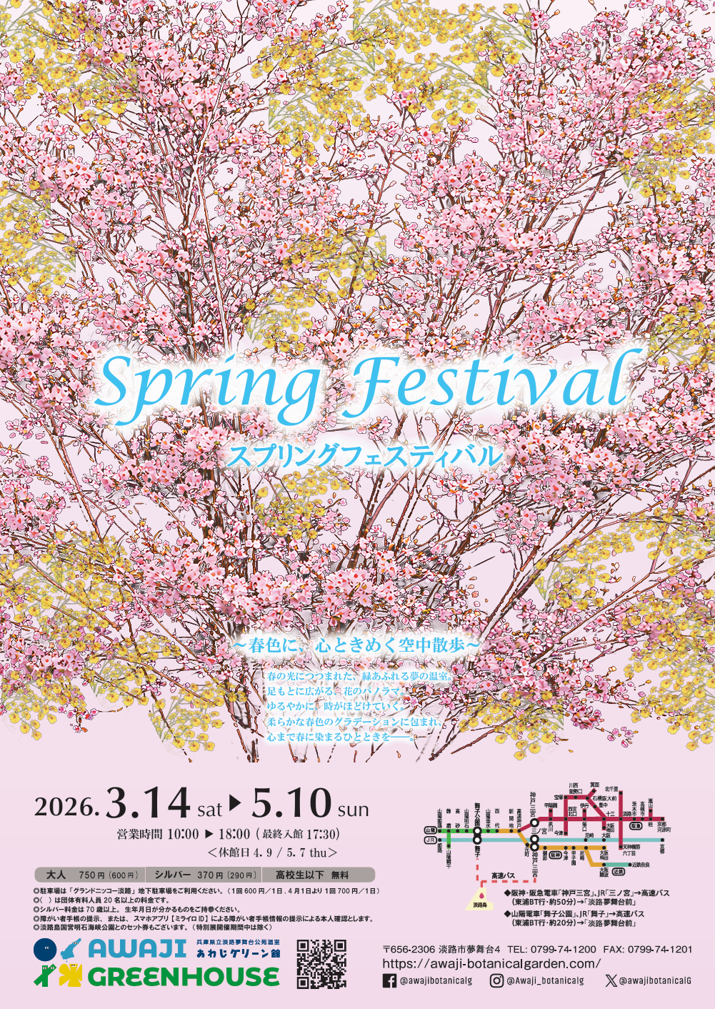 あわじグリーン館では春の訪れを楽しむ「スプリングフェスティバル ~春色に、心ときめく空中散歩」を開催いたします。