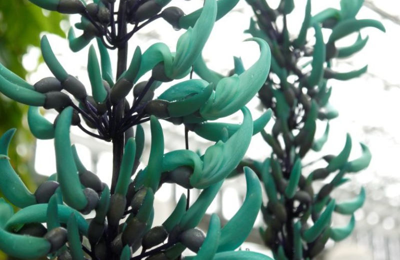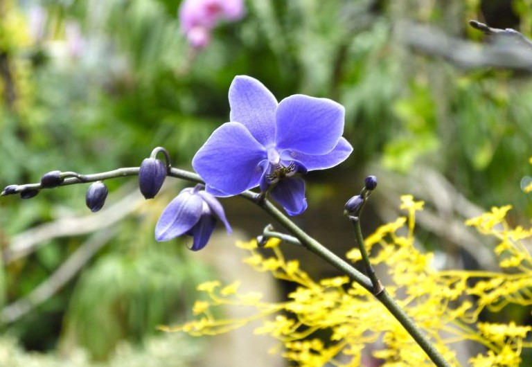 なかでも目を引くのは、産学共同で生み出された日本が誇る青色の胡蝶蘭「ブルージーン®」、宝石の翡翠を思わせる神秘的な花色のヒスイカズラ、そして個性豊かな台湾生まれの胡蝶蘭。さらに、高さ2mを超え、小さなカップ型の花を無数に咲かせるエキウムは、まるで宝石を散りばめたような華やかさです。