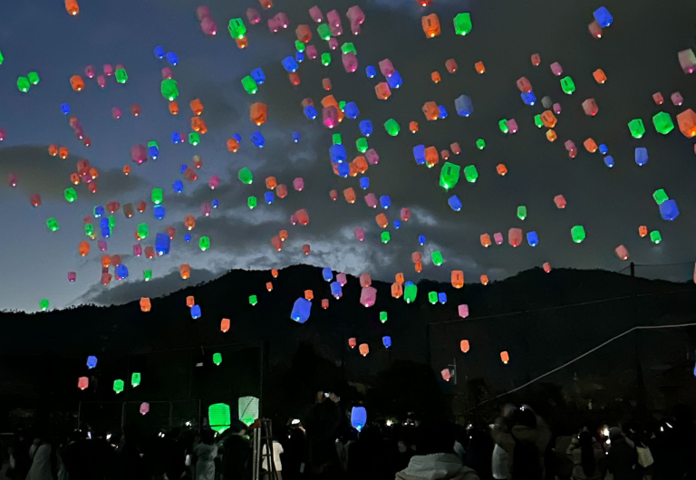 ●今年は場所を変えて約250基の色とりどり(5色)のLEDランタンが宝塚の夜空に浮かびます。