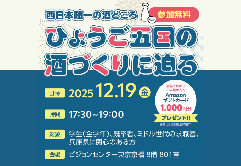 兵庫県のお酒を試飲していただきながら、お聞きいただけます!