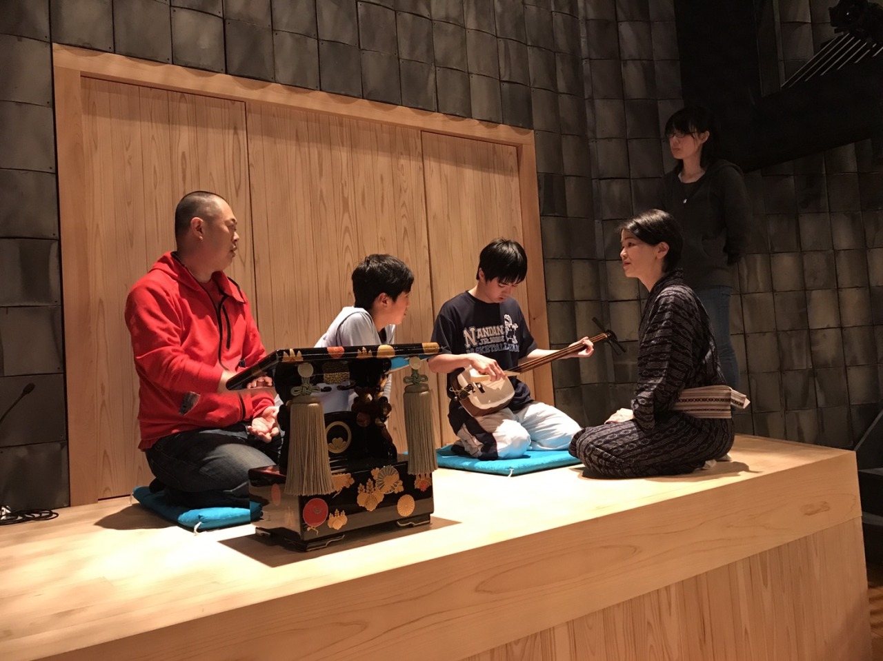 希望者は公演鑑賞後に、座員の指導のもと実際の人形を使った三人遣い、声を出して一節を語り感情を表現する太夫、三味線演奏、「人形浄瑠璃の三業」を体験することができます。各体験中に記念撮影も可能です。
