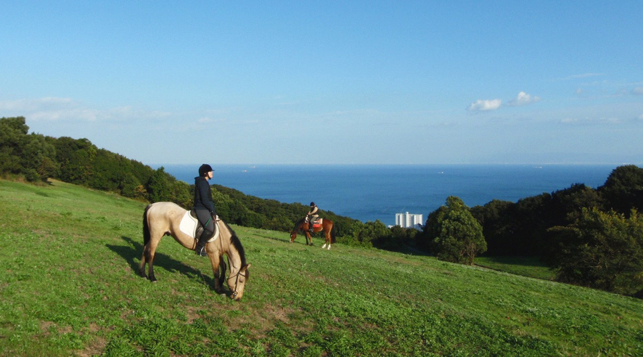 淡路島の北、見渡せば大阪湾が眼前に広がる絶好のロケーションでの曳き馬体験=乗馬散歩。スタッフが曳いてくれる馬に乗りながらの散歩は初心者の方でもお楽しみいただけます。高級で敷居の髙い乗馬クラブとは違い、四季折々な淡路島の自然を愛でながら、唯一動物と行なうスポーツである乗馬を身近に感じてもらえることを大切に体験レッスンを実施します。