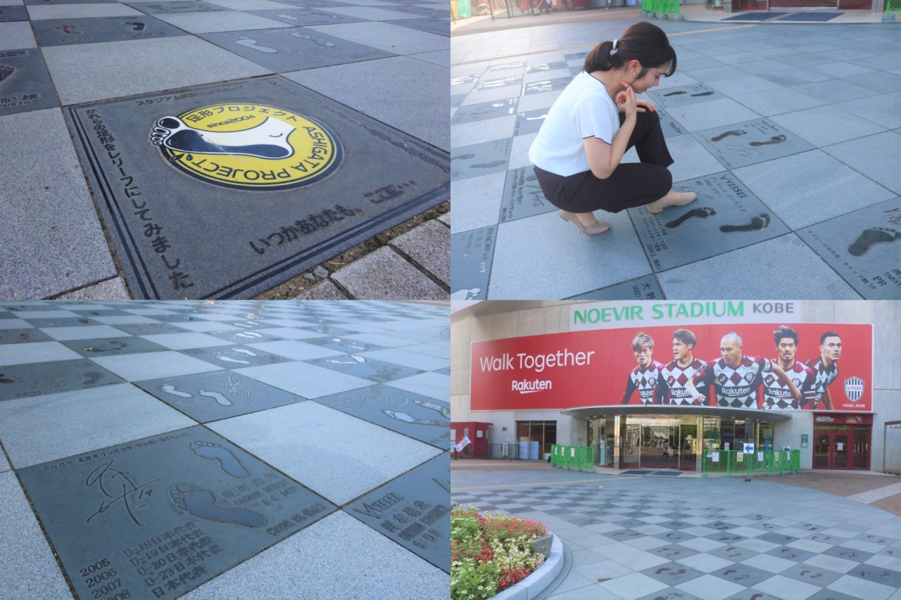 エントランス前には、「足形プロジェクト」と題し、サッカーのアンドレス・イニエスタ選手、澤穂希選手やラグビーの大畑大介選手など、神戸にゆかりのあるスポーツ選手の足形レリーフが設置されています。往年の名選手や世界的スター選手のレリーフが数多くあり、知る人ぞ知る穴場スポットとなっています。