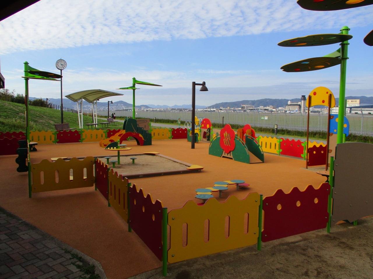 伊丹スカイパークは、航空機騒音を和らげる緩衡緑地として国と県と市の3者が協力して平成5年から整備し、平成20年7月に完成した9ヘクタールの広大な公園。