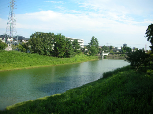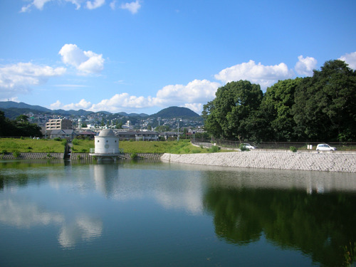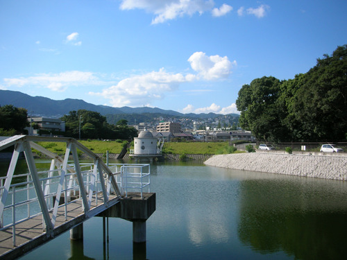 深緑色の水を満々とたたえたこの池は西宮市の貯水池で、桜並木になった池の周辺は散策にうってつけです。