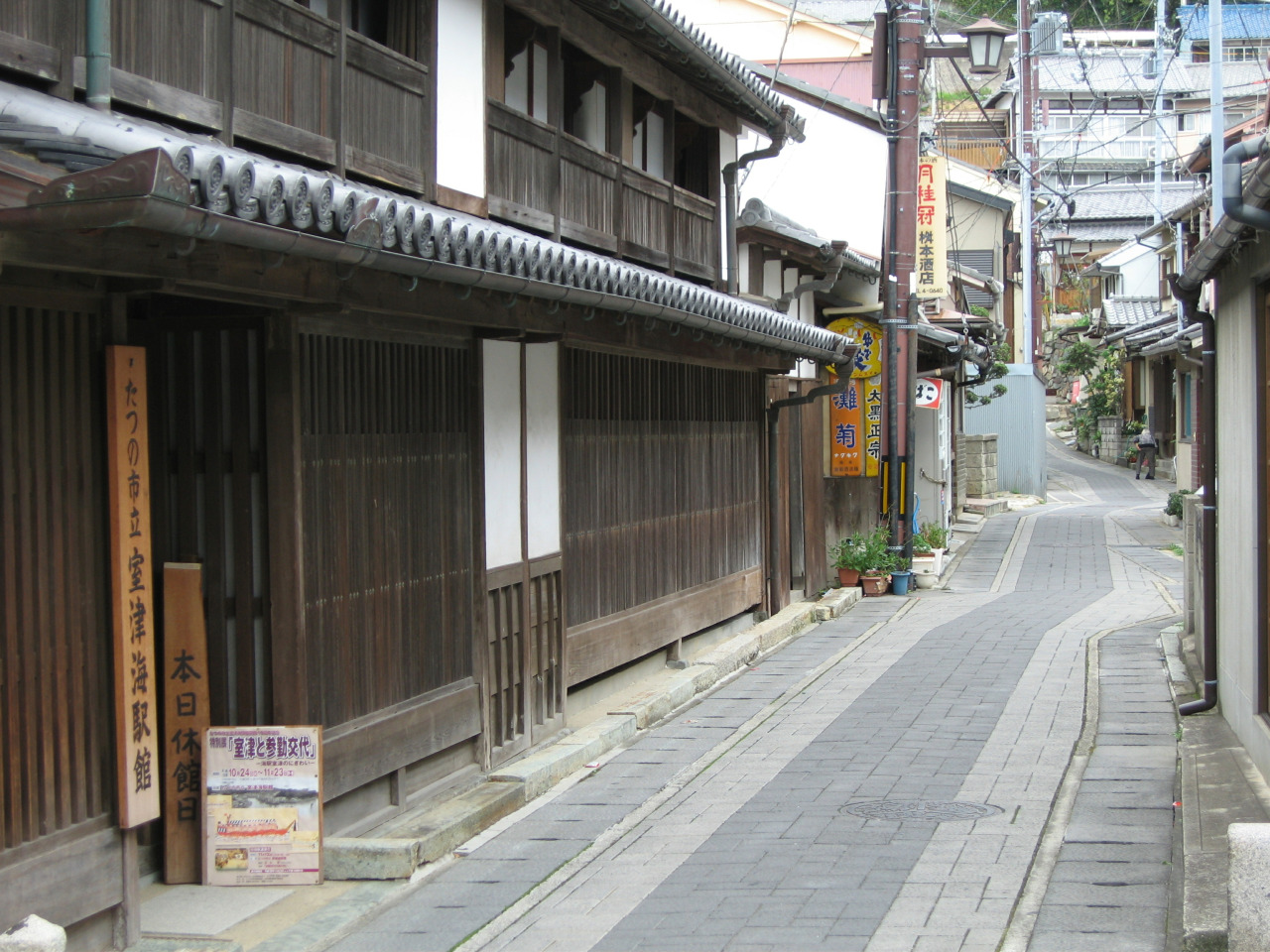 室津は港町として1300年の歴史があります。奈良時代に行基法師により大阪から兵庫にかけての主要な5つの港が整備されました。そのうちの1つが「室(室津)」です。また、室津はロマン香る地として数々の文豪に取り上げられてきました。井原西鶴、谷崎潤一郎、竹久夢二、司馬遼太郎、平岩弓枝。文豪達が描く室津はいつでもあでやかで、せつなく、そしてどこか懐かしい町です。