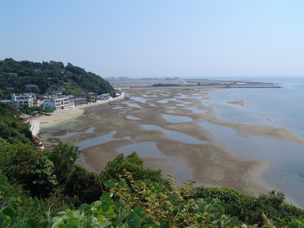 近畿隋一の遠浅の海岸。瀬戸内海国立公園に属する美しい景勝地。干潮時には沖500mの広大な干潟が現れます。