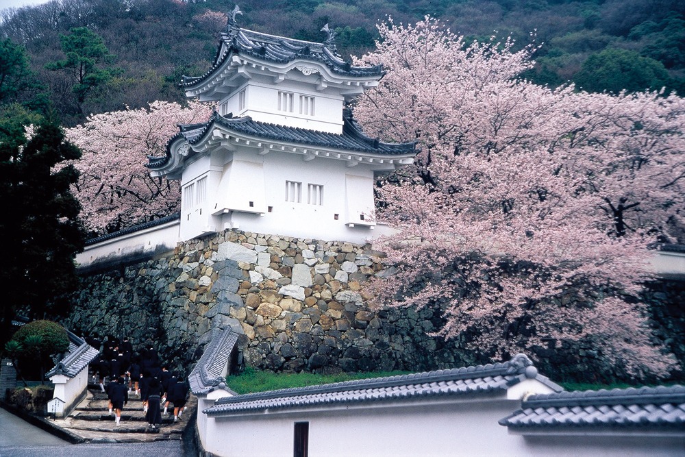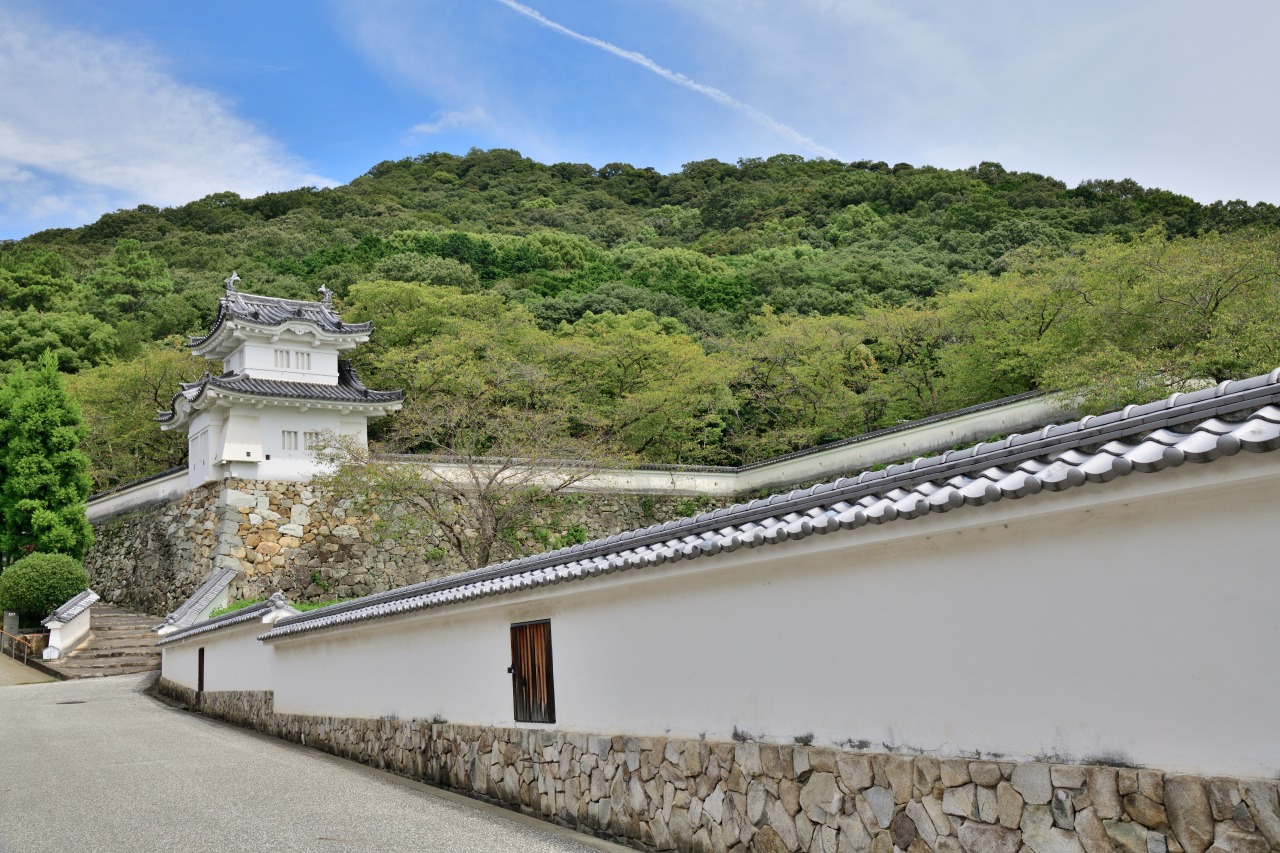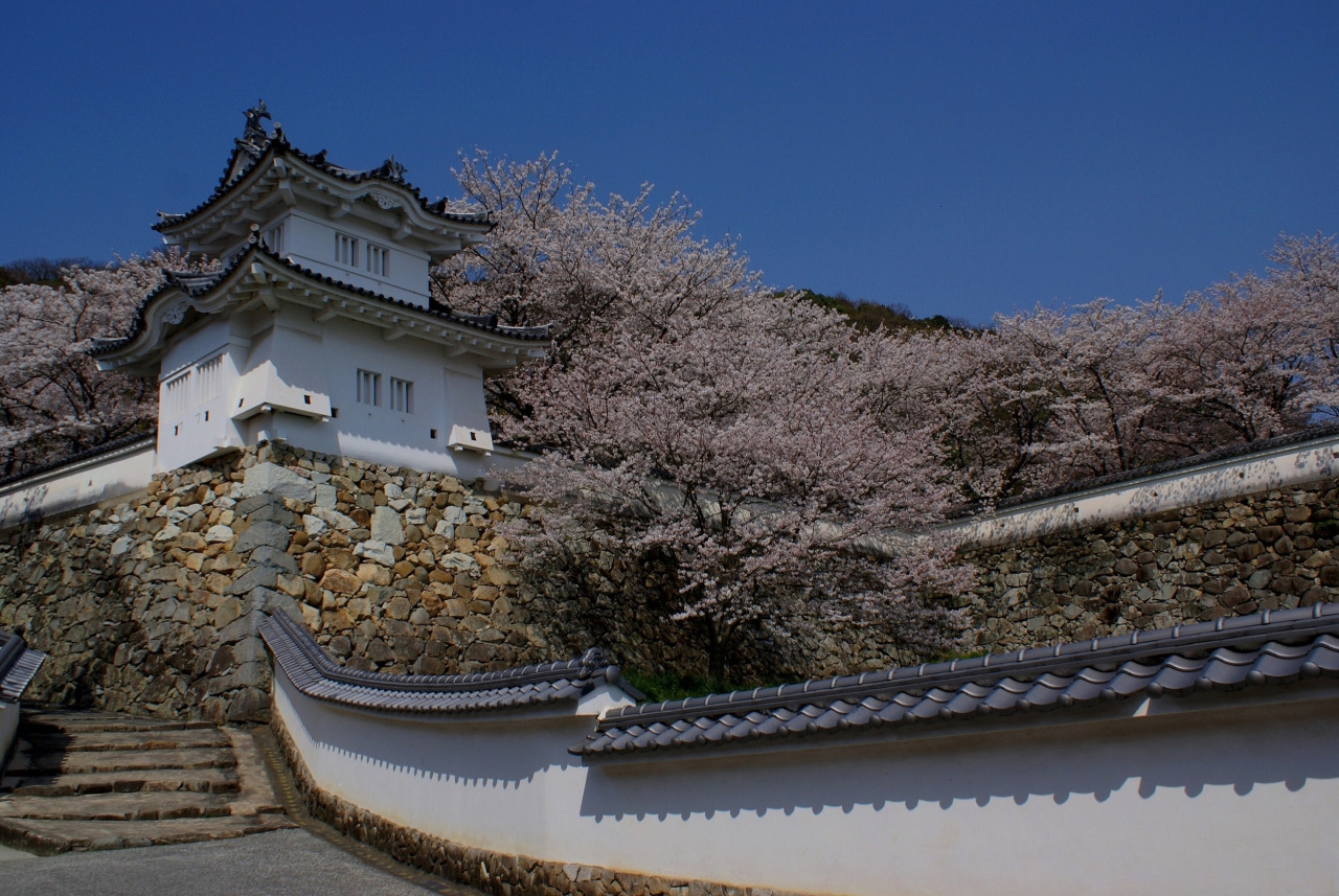 たつの市街地を見下ろす鶏籠山山頂の山城と山麓の平山城との二期に分かれ、山城は約500年前赤松村秀によって築かれ、天正5年豊臣秀吉に明け渡されました。江戸時代に平山に移された城は寛文12年に信州飯田から移って来た脇坂安政が再建した。本丸御殿、白亜の城壁、多聞櫓、埋門などが復元されている。