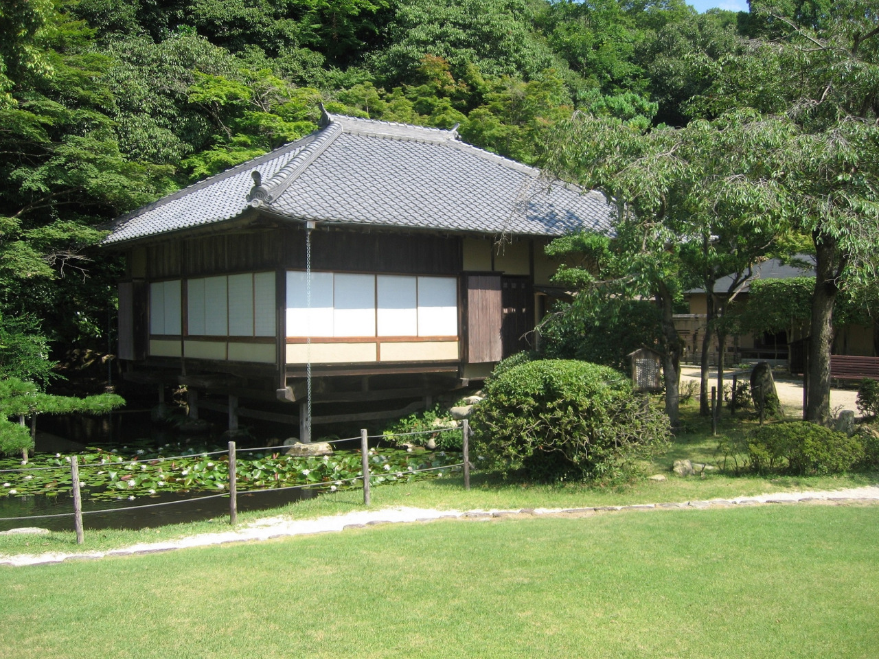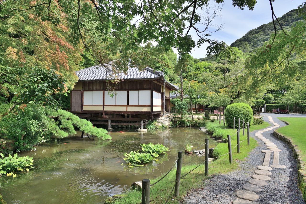 藩主脇坂氏の上屋敷跡の高台にあり、その眺めの良さから「聚遠の門」と呼ばれたことから名づけられました。孝明天皇から拝領したと伝えられる浮堂の茶室を中心に、藩主の御涼所や茶室楽庵があり、土日(1月と8月を除く)には茶席が設けられます。