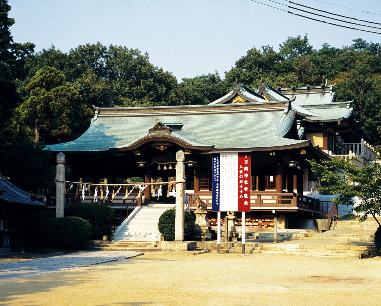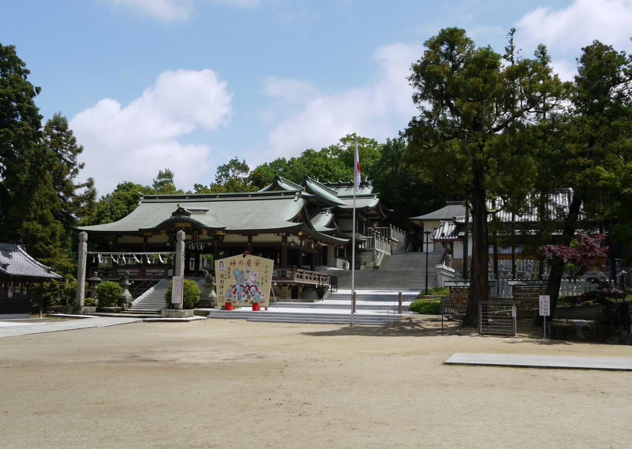 景行天皇の皇后稲日大郎媛が難産だったため、安産を祈願したことにより安産祈願の神様として播磨随一の大社になりました。また、社殿右手には、稲日大郎媛を祀る日岡御陵への石段が続きます。