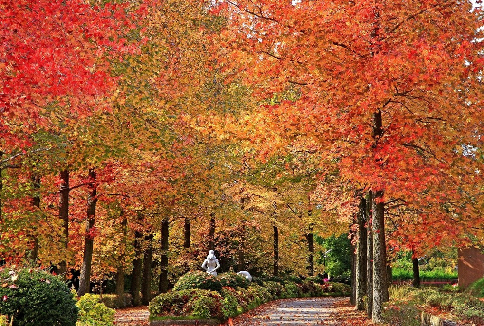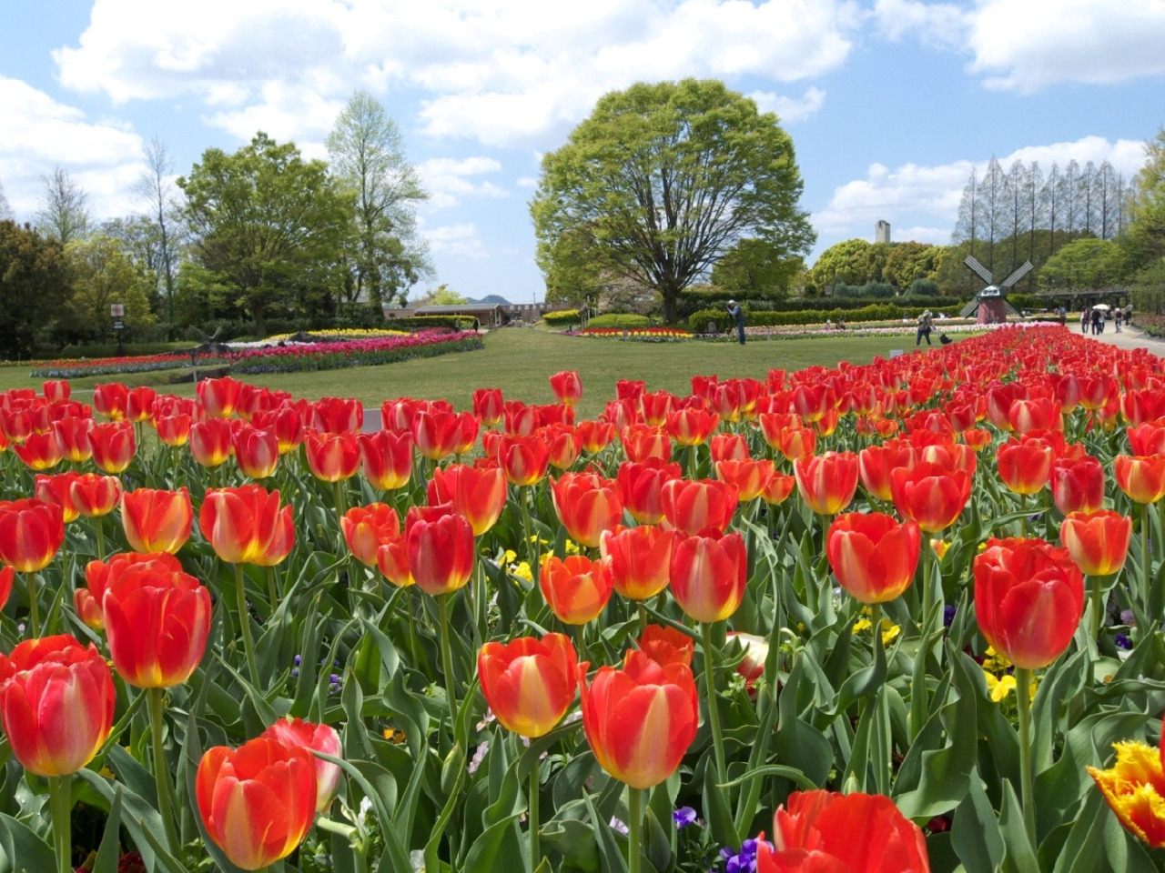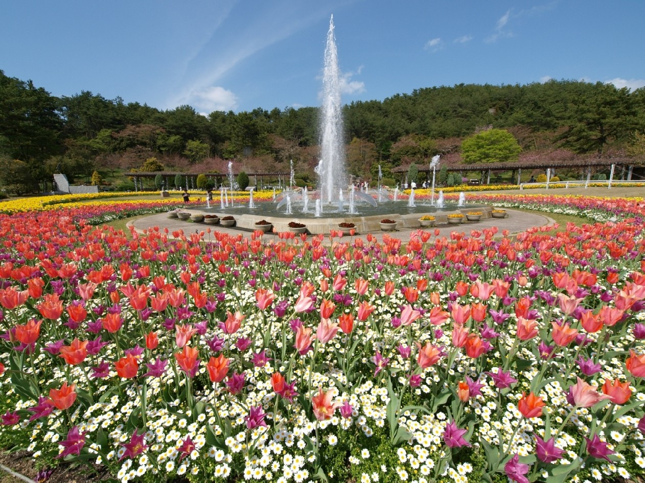 約46haにおよぶ松の自然林をそのままに生かした、全国でも有数の花と緑の植物園。園内中央には、水鳥が遊ぶ亀の倉池があり、池の北側には、滝や噴水また飯盛山が広がっている。池を巡る遊歩道を歩けば、季節の花が咲き競う「大花壇」、南国ムードあふれる「大温室」、モミジバフウの並木道「花と彫刻の道」、小鳥のさえずりが聞こえるのどかな「かおりの森」など、約4500種類の花々の中で胸いっぱいに澄んだ空気が味わえる。また、季節ごとに様々なイベントが催される。