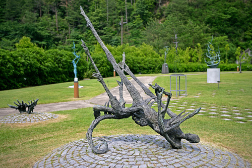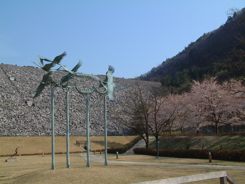 広大なロックフィルダムと大自然を背景に、朝来市出身で文化勲章を受賞した淀井敏夫の作品を常設展示、また迫力ある現代野外彫刻を野外に設置しています。