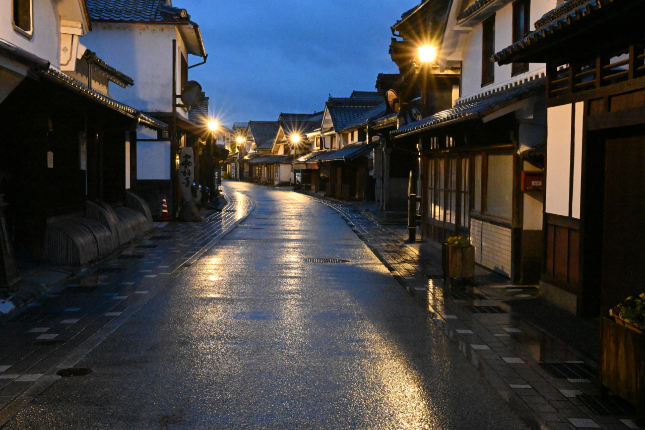 間口が狭く奥行きの深い造りをした妻入りの商家が建ち並ぶ、歴史深い地、河原町。約600mにわたり、藩政時代の面影を色濃く残す家並みがつづきます。土産物屋も点在し、買い物をしながら町歩きが楽しめます。