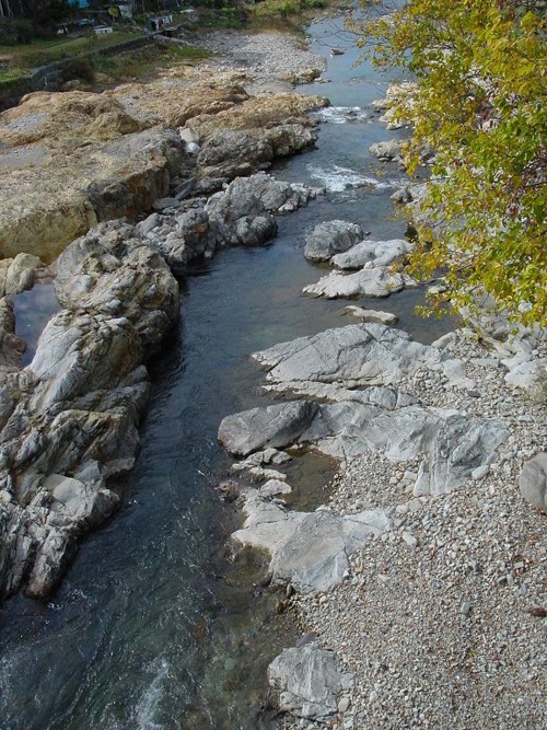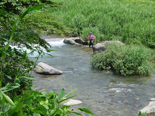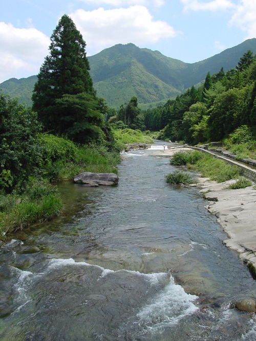 水が澄んでいる清流。夏には、地元の子どもたちが鮎釣りを楽しんでいる。