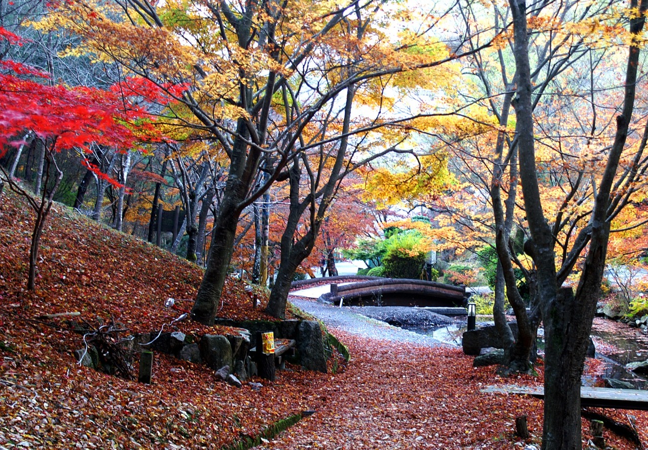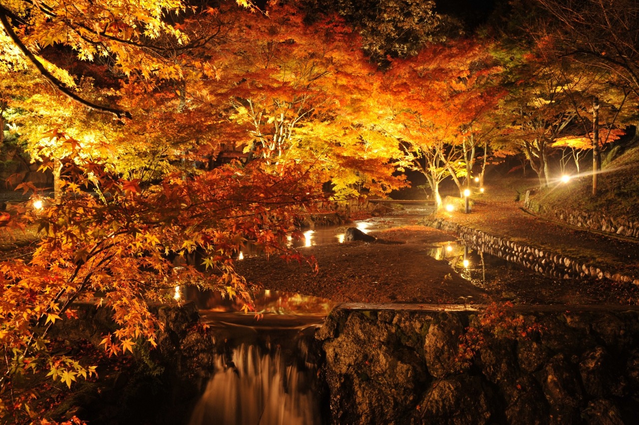 国民宿舎志んぐ荘の近くにある東山公園では紅葉の季節にライトアップで夜も美しい。