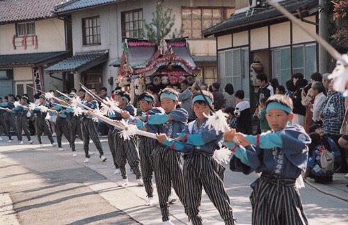 太刀振り 地区に棲みつく悪霊を追い払い、五穀豊穣と無病息災を祈願し、地元の小中学生や青年が、長さ約1.5mの刀を振り、地区内を笛や太鼓に合わせて屋台とともに練り歩く。 エリア 但馬 豊岡市 カテゴリ 特産・行祭事 基本情報 住所 兵庫県豊岡市但東町中山