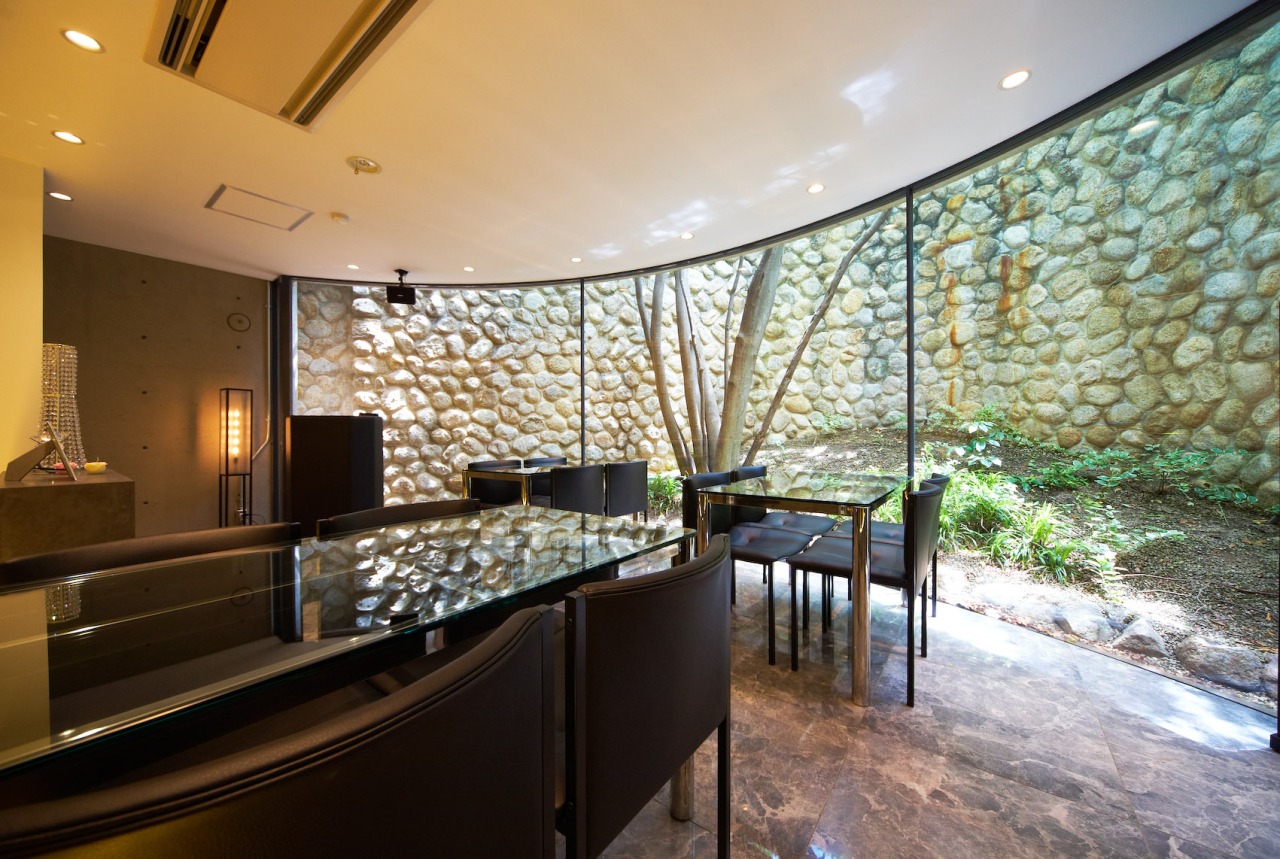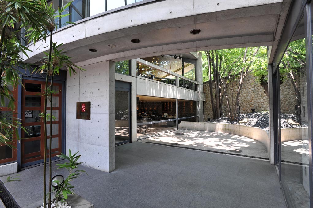 外壁には御影石を使用、敷地内には樹齢200年を越す楠の大木があり、モダンな佇まいの中に自然の美しさが見事に調和した空間となっています。