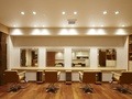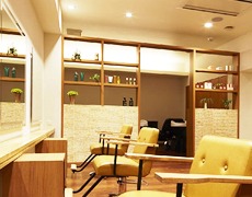 1Fに美容院、2Fがカフェと分かれていて、どちらもモダンでシンプルな外装、内装になっています。