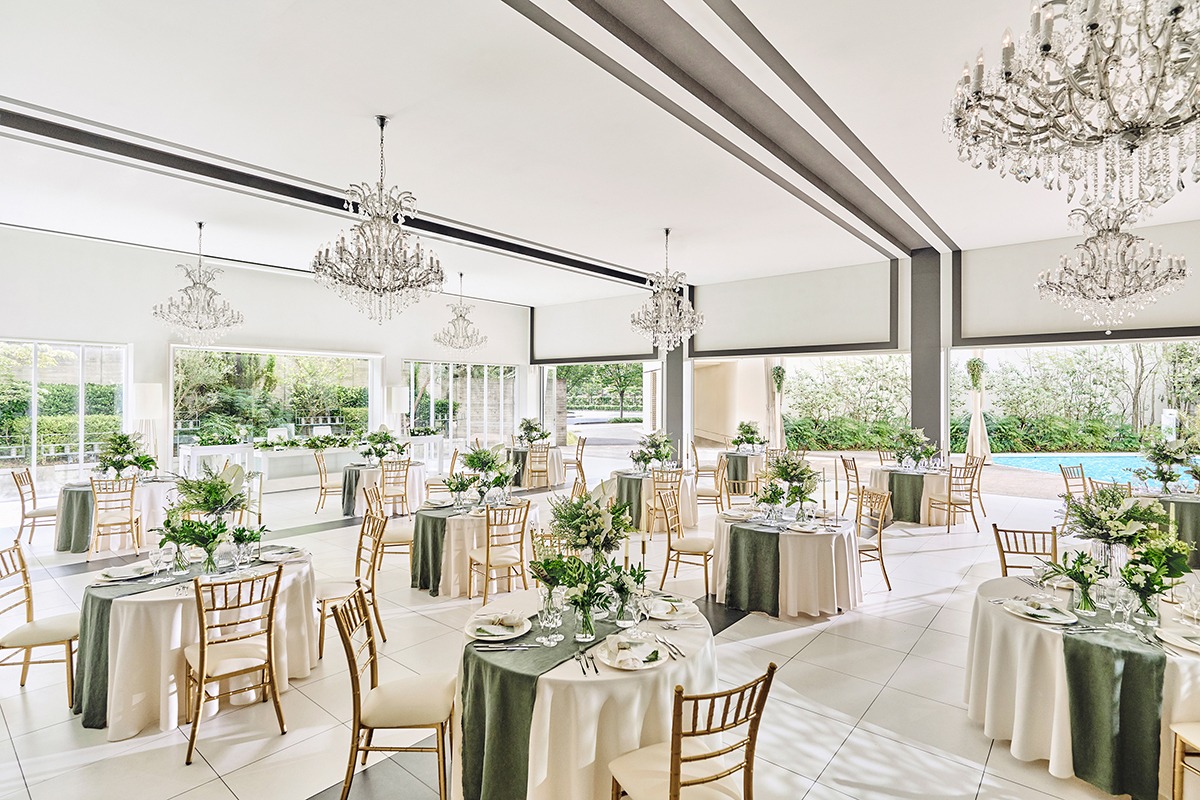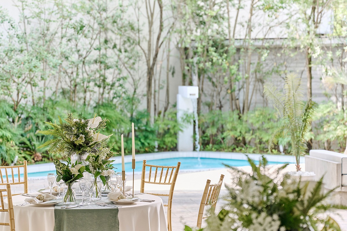 プール付の全天候テラスを備えた広いパーティ会場や独立型チャペルなど、撮影に適したスポットも多くあります。