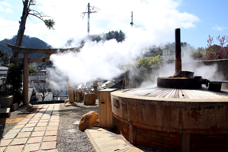 湯村温泉。日本屈指の98度の高温泉が噴出