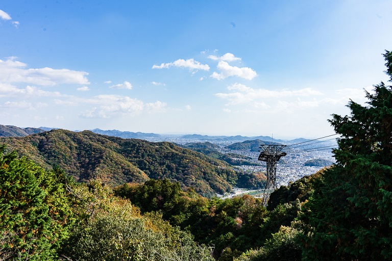 圓教寺は、千年前後に天台宗の僧侶である性空上人によって書寫山の頂上に創建されました。山の麓のロープウェイ駅から寺までの道は2つあります。 一つはロープウェイに乗る道、もう一つは1時間の登山です。 ロープウェイからは、姫路市の素晴らしい景色を楽しむことができます。山が赤やオレンジの色合いに染まる秋の紅葉も楽しむことができます。