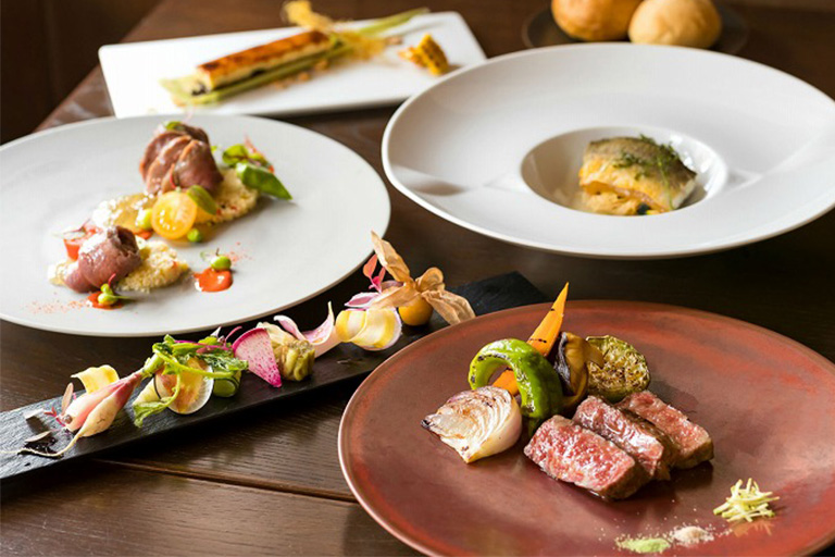 ▲Nipponiaのレストランのメニュー一例。ディナーは丹波篠山の食材をたっぷり使ったフレンチ