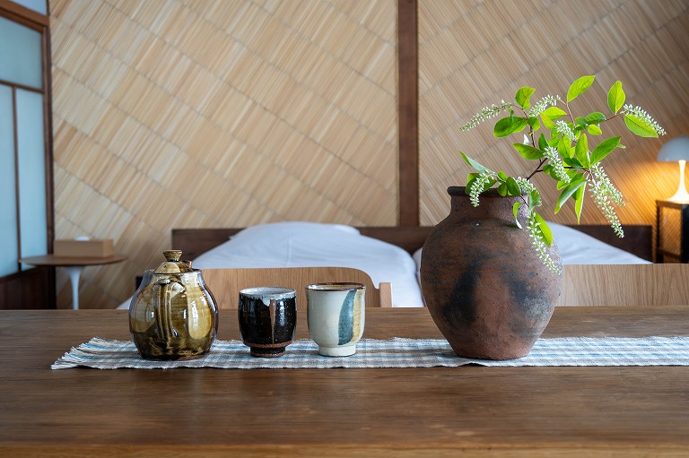 1フロアを丸ごと使った贅沢な客室は、丹波篠山ゆかりのアーティストによる作品が飾られ、滞在するだけでセンスが磨かれていくような上質な雰囲気をまとっています。