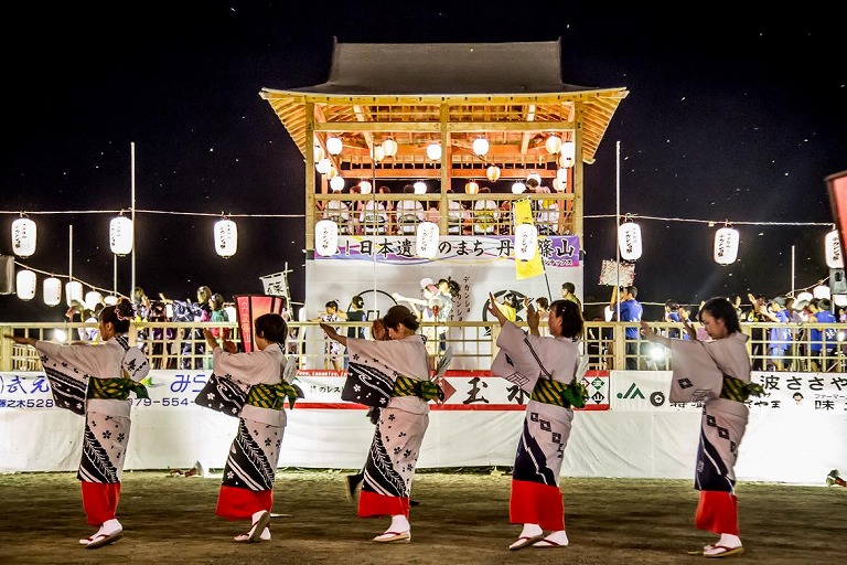 ひとつ目は「丹波篠山デカンショ節 民謡に乗せて歌い継ぐふるさとの記憶(Tamba-Sasayama: Dekansho Bushi~ Memories in a folk song ~)」。デカンショ節とは江戸時代から歌い継がれるこの地方の民謡のことで、時代ごとに地域への愛着や風物が歌われてきました。毎年8月にはデカンショ節に合わせて手拍子で踊るデカンショ祭が開催され、ひと目見ようと遠方からも観光客がやってきます。