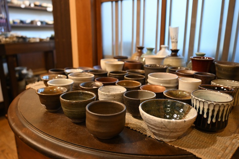 ▲全国各地からセレクトした食器や湯のみが用意されている