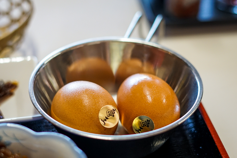 お次は「極上卵かけご飯(800円)」をいただきます。こちらも卵の濃厚さや付け合せの漬物や煮物との相性抜群。噛むほどに甘みを感じるお米も絶品です。