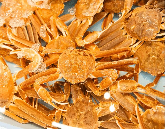 翌日は、海の恵を堪能したい。城崎温泉から電車や車で約1時間、日本海に面した浜坂漁港にあるマル海渡辺水産でランチをとる。魚市場は、活気にあふれ、競り人の威勢の良い掛け声と活きのいい鮮魚が並ぶ。春はホタルイカ、夏はシロイカ、秋は赤エビ、冬は松葉ガニなど、一年中新鮮な魚介類を堪能できる。特に冬の松葉ガニは有名で、この地域でとれた最上級ブランドのカニを食しに世界中から観光客がやってくる。