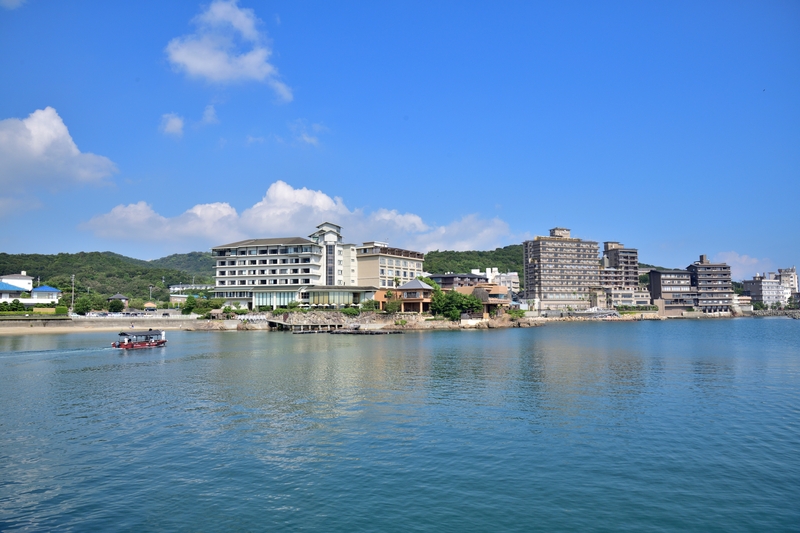 城下町として栄えた洲本市街地にある淡路島最大の温泉地「洲本温泉」。オーシャンビューの露天風呂などが魅力の老舗高級旅館などが海岸線に立ち並ぶ。泉質は弱白色でアルカリ性単純温泉で、肌がしっとり滑らかになり湯冷めしにくいのが特徴だ。