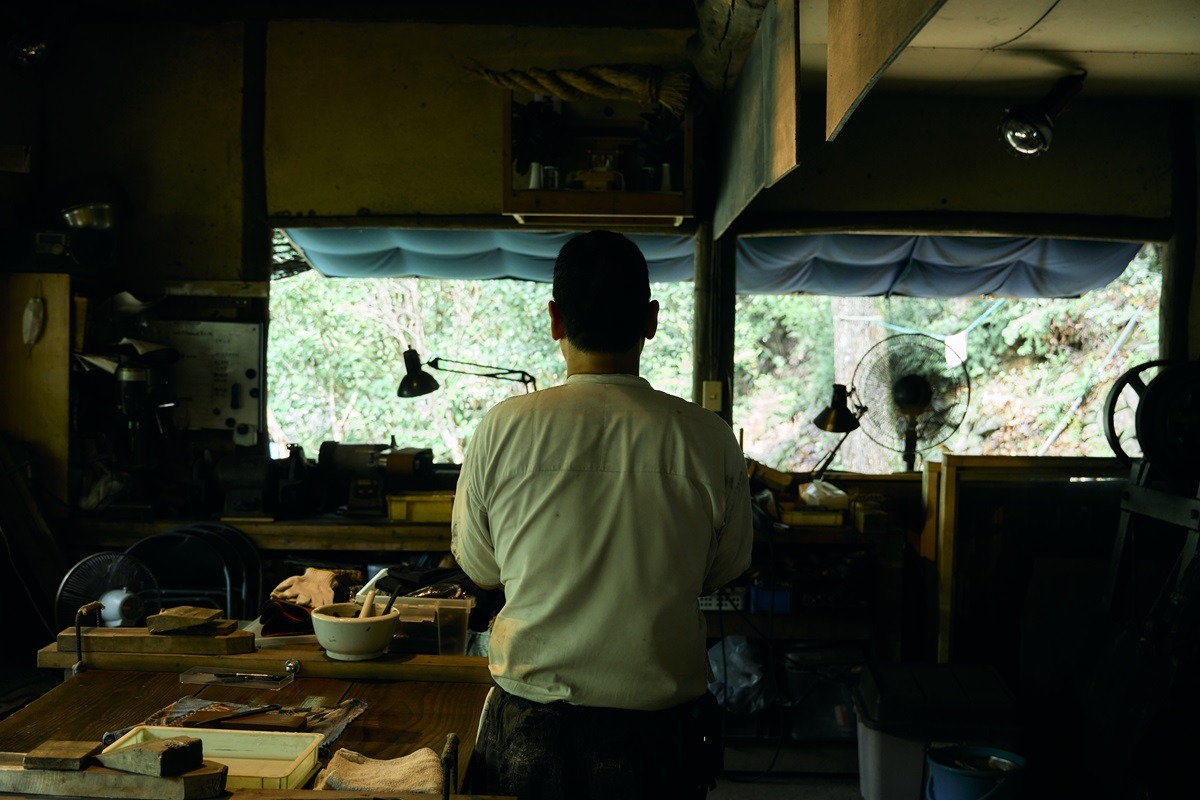 1900年代前半から使われていた道具を譲り受け、作刀している桔梗さん。