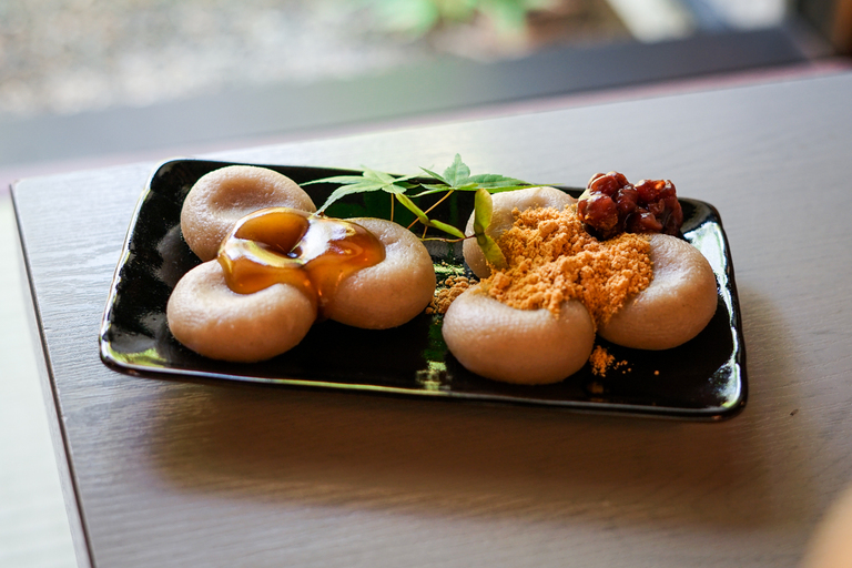 そばを使ったスイーツも一緒に堪能しましょう。「そばプリン」や「そばアイス」「そば団子」といったメニューが充実しています。上の写真は、きなこ味とみたらし味を楽しめる「そば団子」。噛むほどに素朴な甘みが口の中に広がり、ぺろりと食べてしまいました。