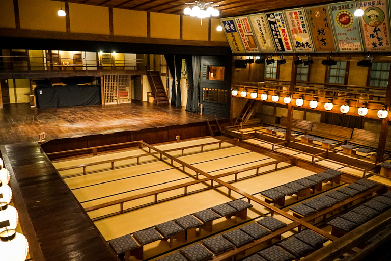 舞台から客席に延びている通路で役者が入退場に使う花道や、場面展開に使われる廻り舞台など、まるで昔の芝居小屋にタイムスリップしたかのよう。
