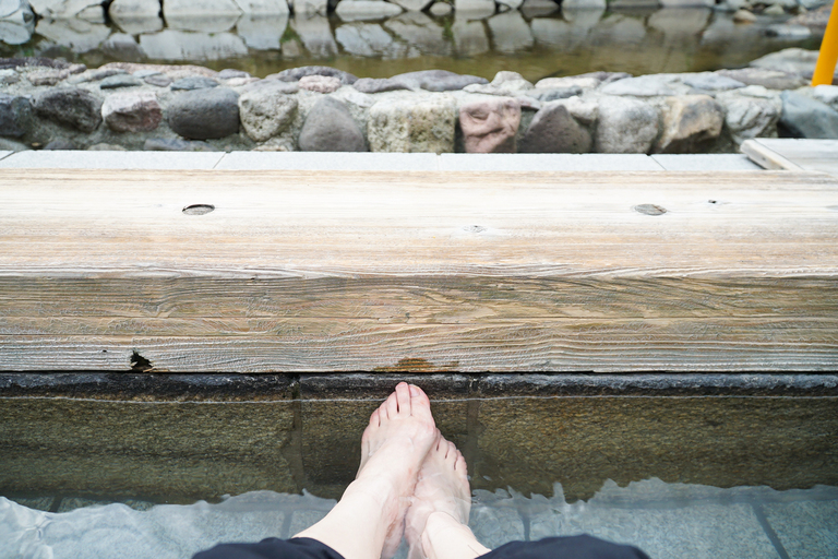 温かいお湯に、旅の疲れが癒される足湯。目の前には春来川で泳ぐ鯉や温泉の景色が綺麗に見え、美しいです。街歩きをしながら、ふとした時に足湯でリラックスできるのは湯村温泉ならではの楽しみ方と言えます。