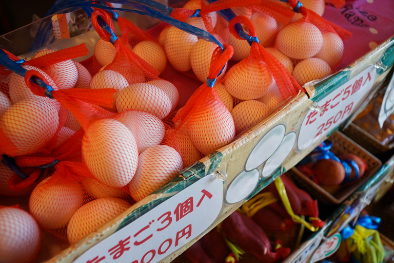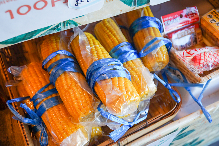 荒湯の紹介で湯村温泉の「湯がく」文化について触れましたが、湯がく食材に迷ったらぜひ、荒湯からすぐの「栃泉」へ。お店の入り口には、卵や野菜はもちろん、プリン、日本酒、コーヒー、お酒など、想像を超えるほど充実したラインナップに驚かされます。