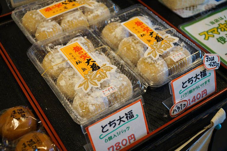 栃の実のアク抜きをして渋味を取り、もち米と一緒に蒸し上げて作られたとち餅やその中にあんこを入れたとち大福。実際に食べてみると、独特の香ばしさがあり、クセになる美味しさ!昔ながらの味と製法を守り続けている栃泉で、本場のとち餅やとち大福を味わってみてはいかがでしょうか?