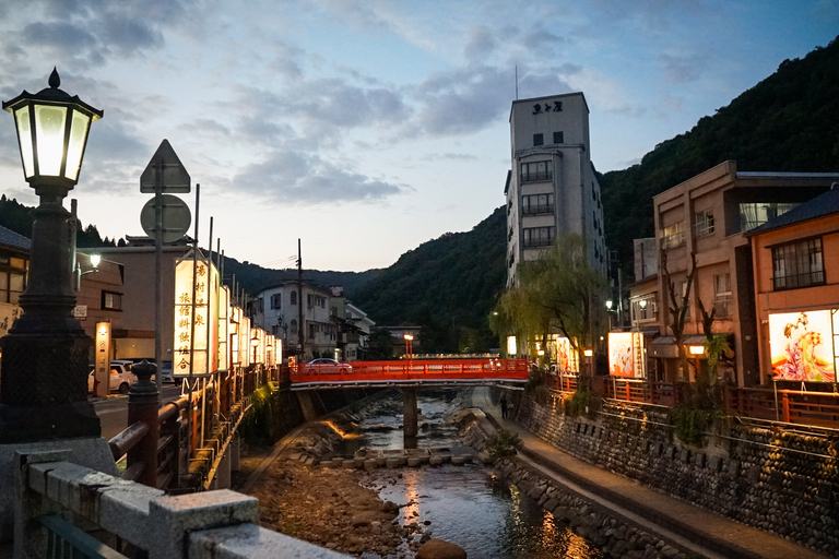 湯村温泉は、神戸・姫路からはJR山陰本線でJR浜坂駅で下車、そこから全但バスで約25分、またはJR山陰本線でJR八鹿駅で下車、そこから全但バスで約75分でアクセスすることができます。さらに、湯村温泉行きの全但バスの特急バスが大阪(日本語のみのため、翻訳機能を活用してください)から運行しており、約3時間ほどでアクセスできます。