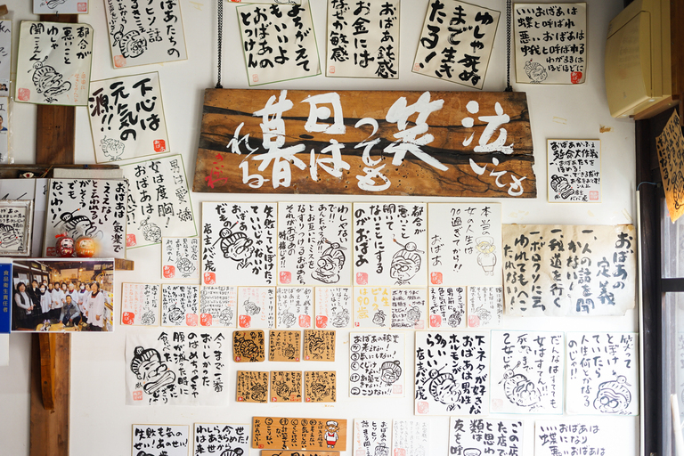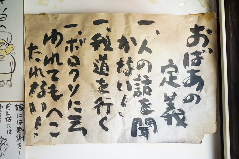 店内の壁には、ズラッとおばあたちの語録がありました。「人生ピークは90歳!」など、元気溢れる語録が壁一面に貼ってあります。