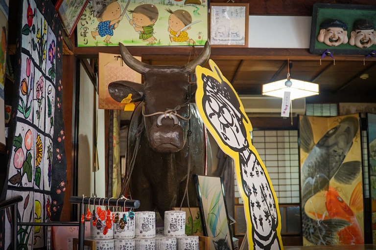 「まぁお茶でもどうぞ」と進められて席につくと、まず店内には「おばあ開運元気神社」という小さな神社が目に入り、ふと前を向くと、大きな但馬牛のレプリカが佇んでいたり、ただ店内を見ているだけで飽きない個性的な雰囲気を楽しめます。