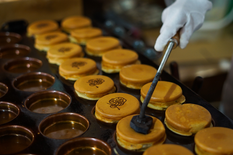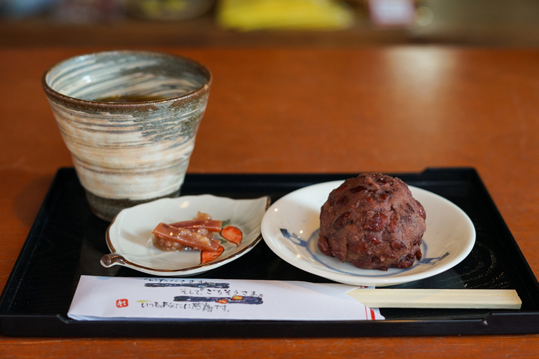 このカフェの名物は「おばあの根性焼き」という大判焼き。栃もちと地元の小豆「美方ルビー」を使った、今川焼きで、時に豪快にはみ出すあんこが特徴です。「90歳になっても根性で焼く!」というおばあの気合いが商品名になっています。
