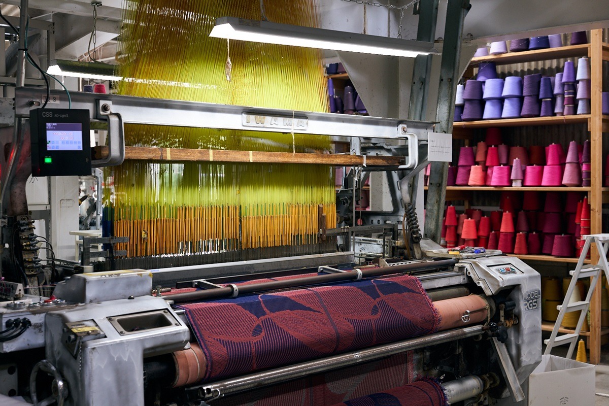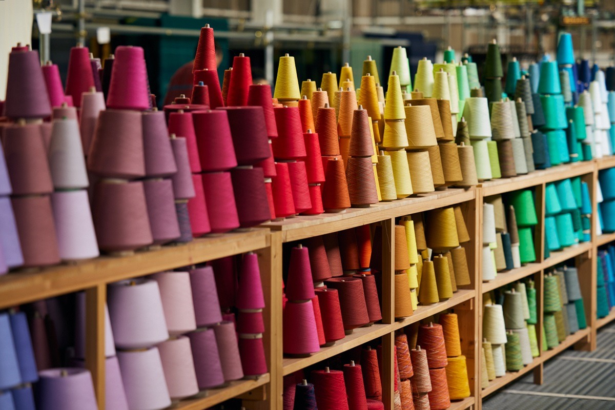 糸を先染め(さきぞめ)をするのが播州織(ばんしゅうおり)の特徴。これにより鮮やかで深い色を表現できる。