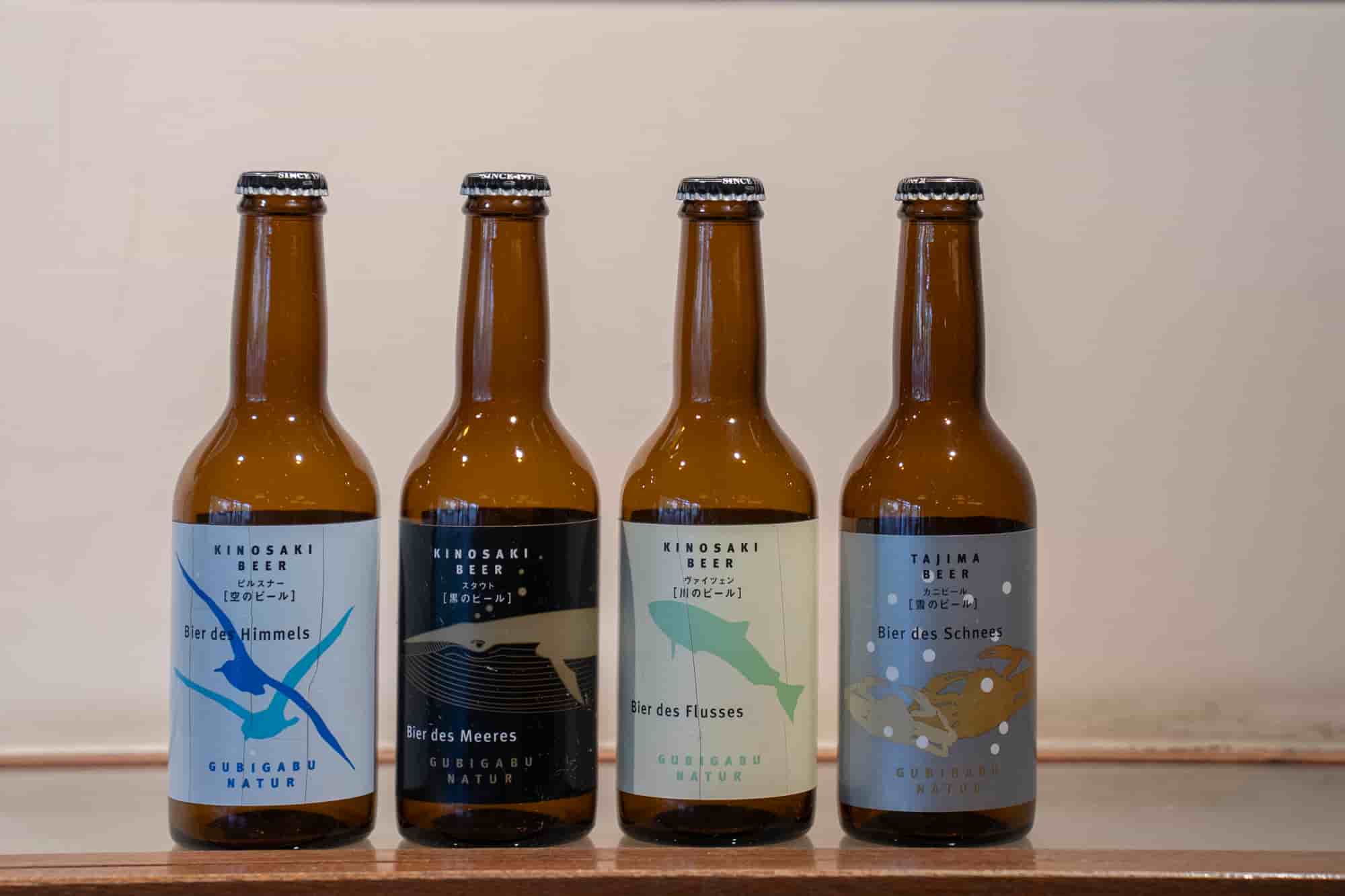 お土産に人気の瓶ビール。左から、ピルスナー、スタウト、ヴァイツェン、カニビール。